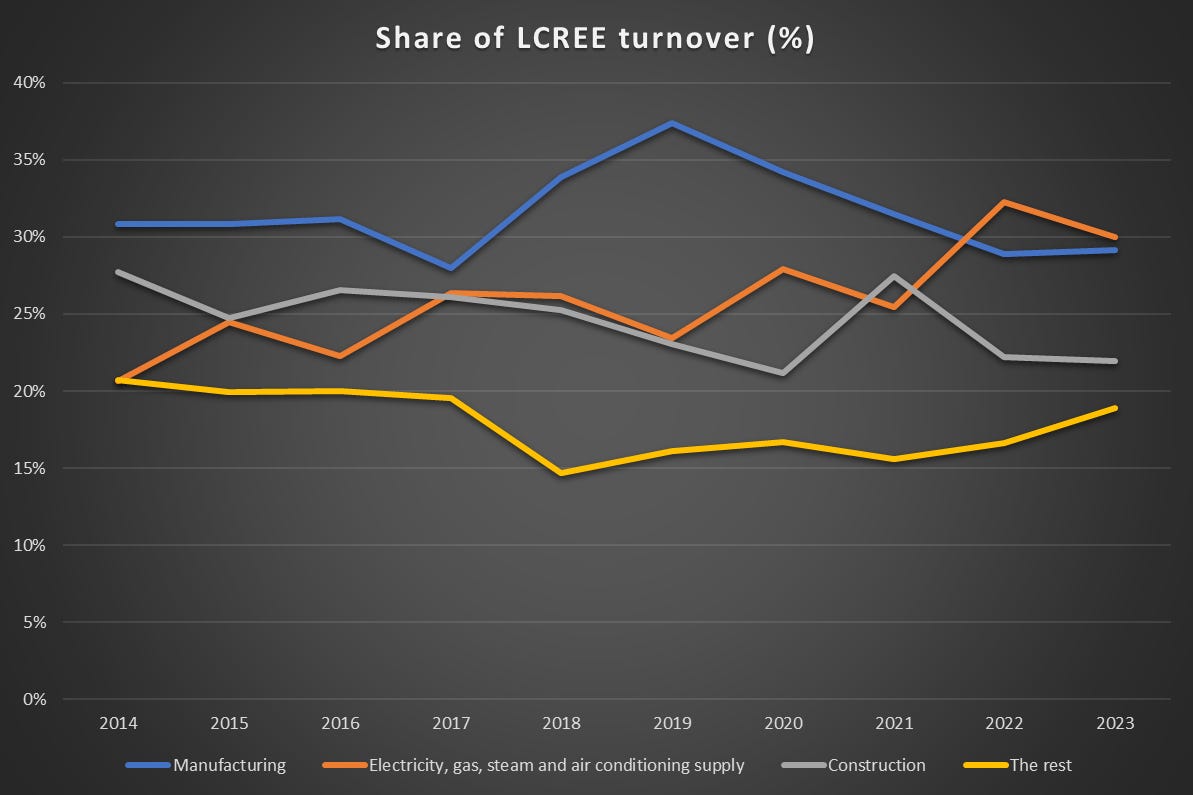 Figure 3: Share of LCREE turnover by sector. Source: LCREE.
